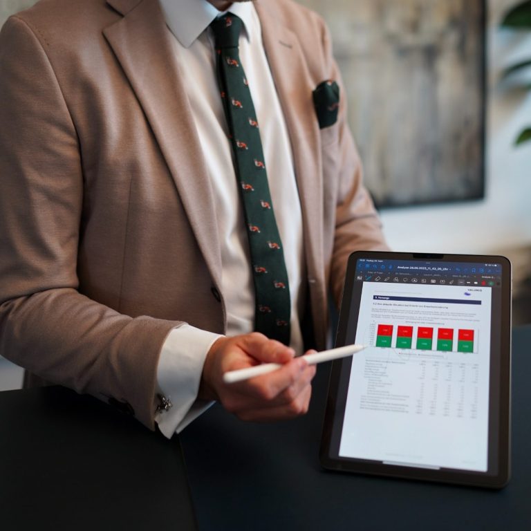 In meiner Beratung lege ich großen Wert auf eine umfassende Analyse der finanziellen Situation meiner Kunden – daraus resultiert eine maßgeschneiderte Bilanz für meinen Mandanten. Anhand dieser Bilanz erarbeite ich für meine Mandanten drei individuelle Konzepte, die langfristige Ziele wie Ruhestandsvorsorge, Vermögensaufbau oder Steueroptimierung berücksichtigen. Nach feinen Adjustierungen wird diese dann realisiert und mindestens einmal jährlich, gemeinsam mit dem Mandanten, kontrolliert.
